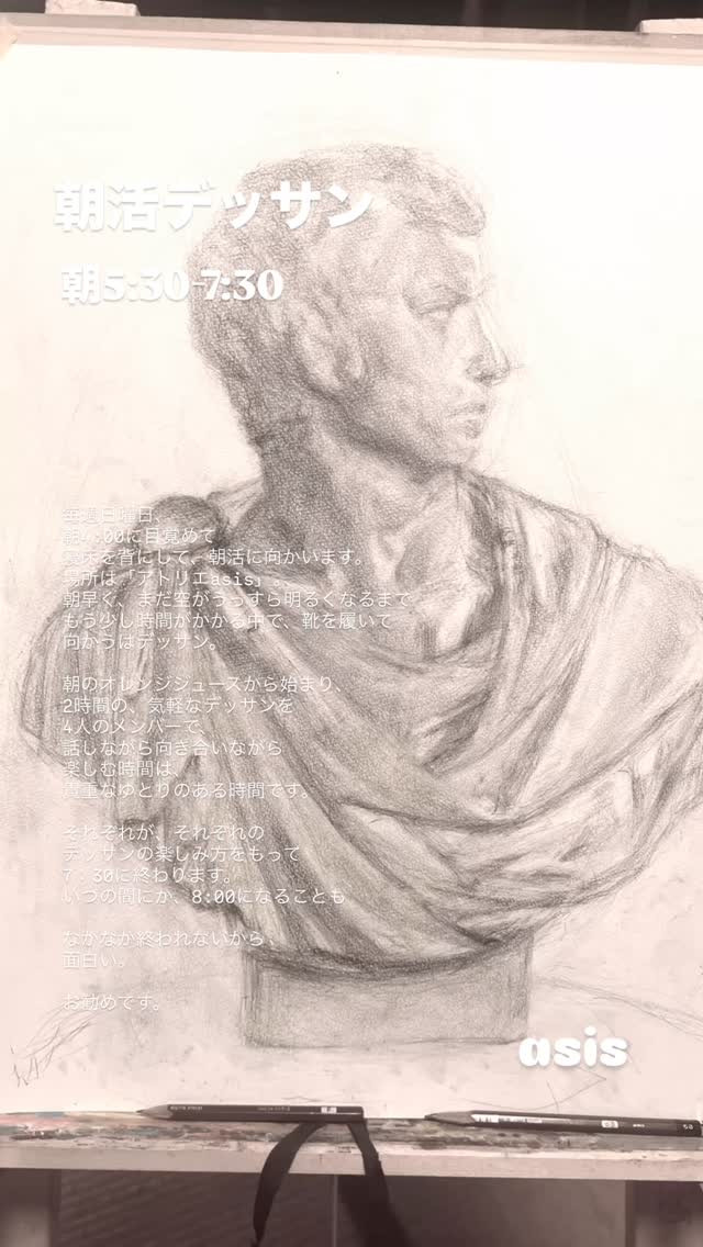 絵画の基本になるデッサンを気軽に名古屋でチャレンジできます。習い事として練習するのが難しい方やまずトライしてみたいという方が気軽にご利用いただけるよう、石膏像をご用意しています。芸大出身の代表がモチーフの提案も行います。